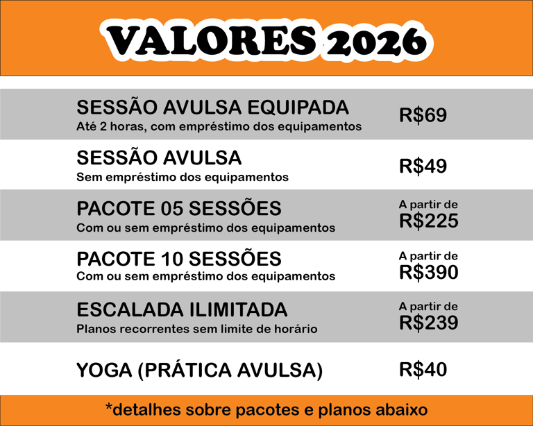 Pacote com 5 sessões avulsas para escalar muito ou dividir com a galera.